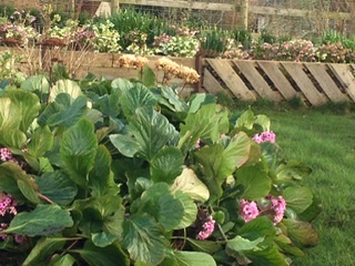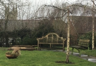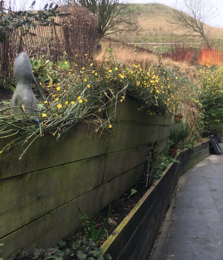 winter time does not preclude beautiful plants showing off extra colour even before the long awaited spring bulbs show through. in my garden i have made some winter vistas with colour, also shapes of plants, levels, wooden fencing or furniture, enhanced too by the unusual shape of the house.