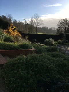winter gardens aren’t always looking empty or ugly: obviously the location makes a difference and here i was visiting the new garden -the newt in somerset- which has been rebuilt In the last few years, now called emily’s garden after emily hobhouse who cared for soldiers in the boer wars (late 19th c south africa). the new owners, who bought hadspen house from the hobhouse family, rebuilt barns with other buildings on the land which were there long ago. the remodelled garden planting focuses on cider apples both espaliered, inside the garden, with plantations outside it, to replicate their established cider business in south africa.